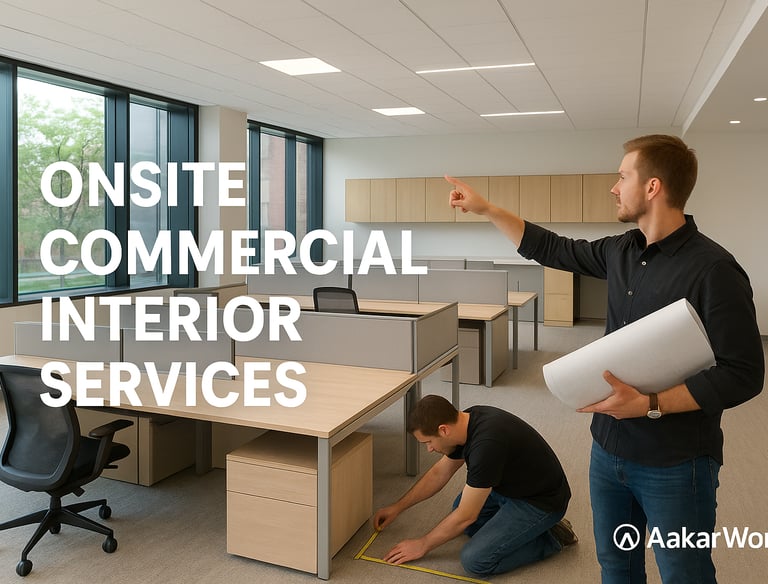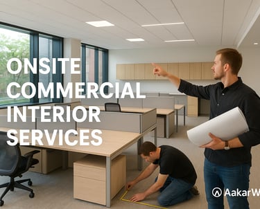 Get hassle-free Onsite Commercial Interior Services with AakarWork. Our experts design and execute modern, vastu-compliant interiors directly at your location with precision, quality, and timely delivery.