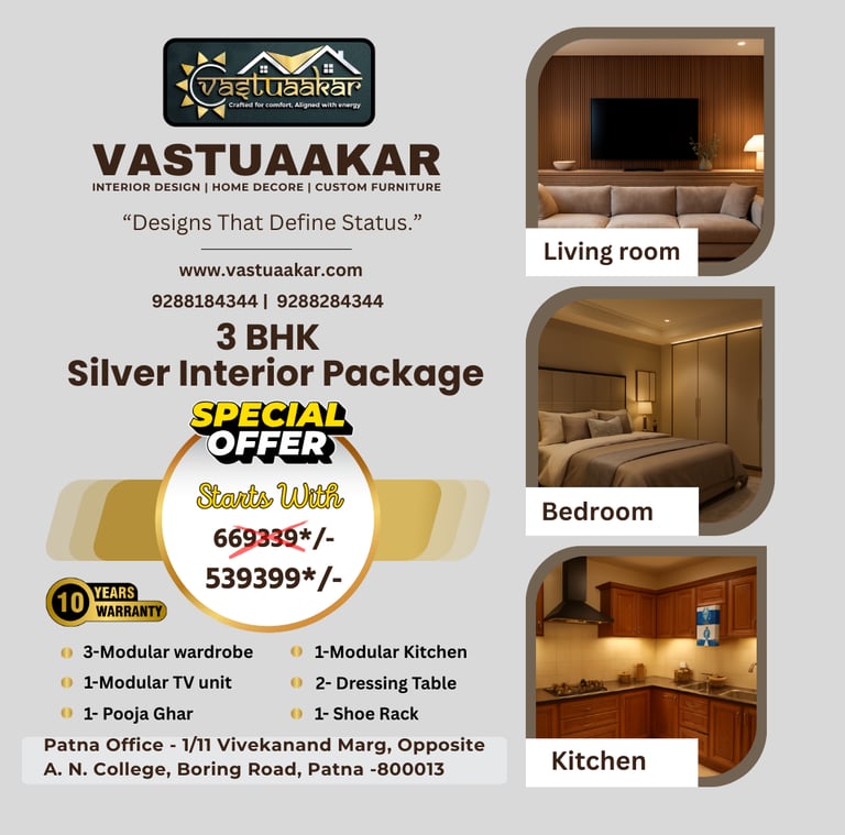 Vastuaakar, under Jivaarth Group Pvt. Ltd., is recognized as the best interior designer in Patna and a top interior designer company in Bihar, offering complete solutions for modular kitchens, wardrobes, bedrooms, puja rooms, living rooms, false ceilings, offices, and commercial interiors. With a unique blend of Vastu principles and modern design, Vastuaakar provides affordable interiors compared to branded players, with a simple booking process starting from just 5% or ₹25,000. Popular across Quora searches like best interior designer in Patna Quora, Vastuaakar is often compared with Ziee Interior | best interior designer in Patna | but stands out for its transparent pricing, local presence, and customized service across all districts including Muzaffarpur, Gaya, Bhagalpur, Darbhanga, Purnea, Siwan, Vaishali, Champaran, and more. Whether you are searching for interior designer near me in Patna or home interiors anywhere in Bihar, Vastuaakar ensures modern, vastu-compliant, and budget-friendly designs with expert support in every district.